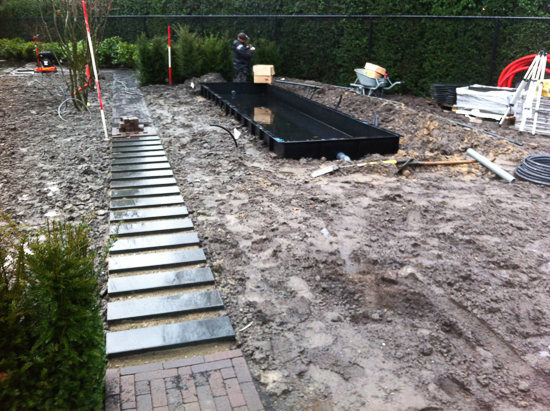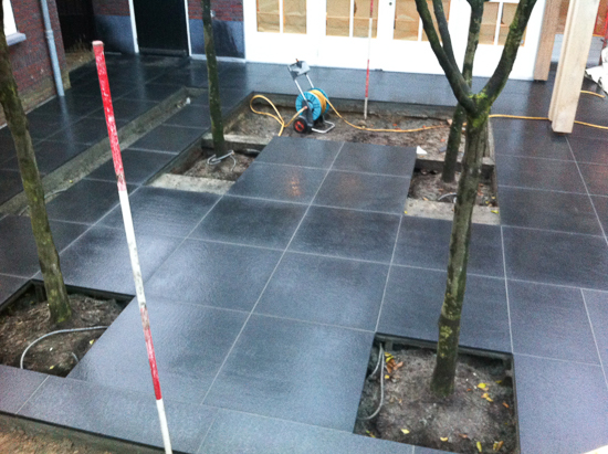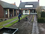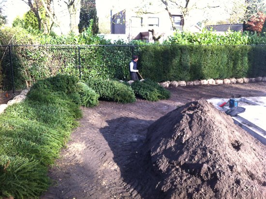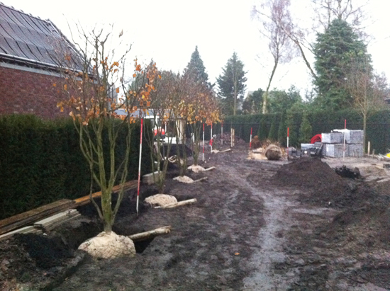 De werkzaamheden bij de aanleg en renovatie beginnen met het opschonen, oprooien/afzagen van bomen en heesters die eruit mogen. Vervolgens zetten we de hoogtes uit in de tuin om daarna te beginnen met het grondwerk en uitgraven van het cunet/zandbed (waar de bestrating komt). De volgende stap is het aanleggen van kabels, leidingen/drainage en heel belangrijk is een goede waterafvoer in de tuin (indien nodig). Daarna kan de bestrating worden gelegd, verlichting en eventueel beregening worden aangesloten. Als laatste worden de bomen en beplanting aangebracht. Zo komt het ontwerp van het papier zichtbaar in de praktijk. Dit alles gebeurt met veel vakkennis, ervaring en oog voor detail.